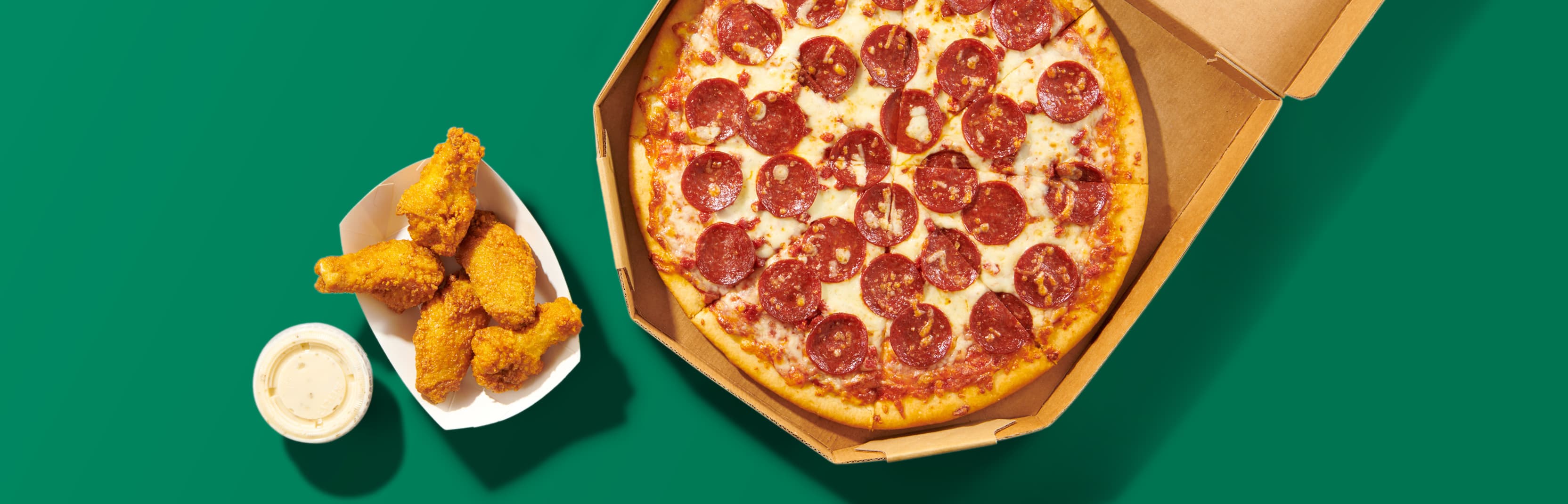 Bread, sauce, and cheese make a classic pizza. At 7-Eleven, we like to add a little bit of pizzazz sometimes. Our large pizzas are made with hand-selected ingredients, a secret sauce recipe, and a perfectly balanced crust. There are hundreds of thousands of places to get a large pizza, but only one place is consistently delicious and conveniently located around the world—your local 7-Eleven.