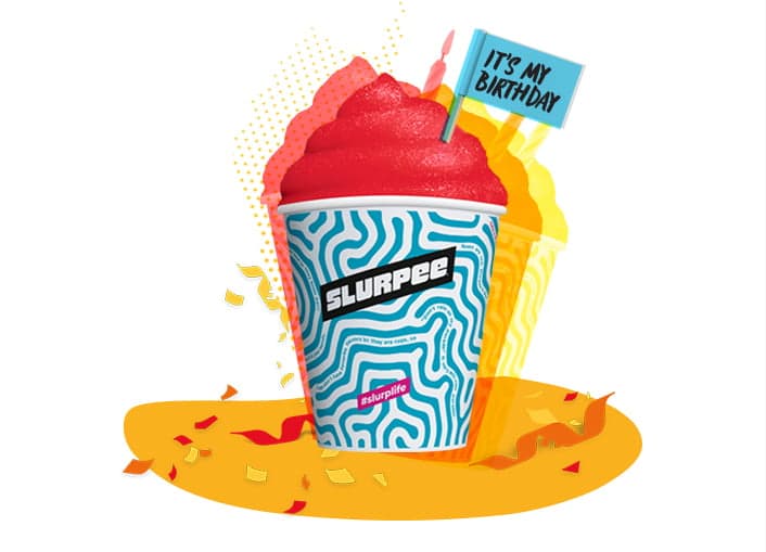 On July 1, 7-Eleven will drop one FREE SMALL Slurpee drink coupon into the wallets of all 7REWARDS members. The personalized offer is redeemable the entire month of July, so customers can get their birthday present (from us) when it’s convenient for them.